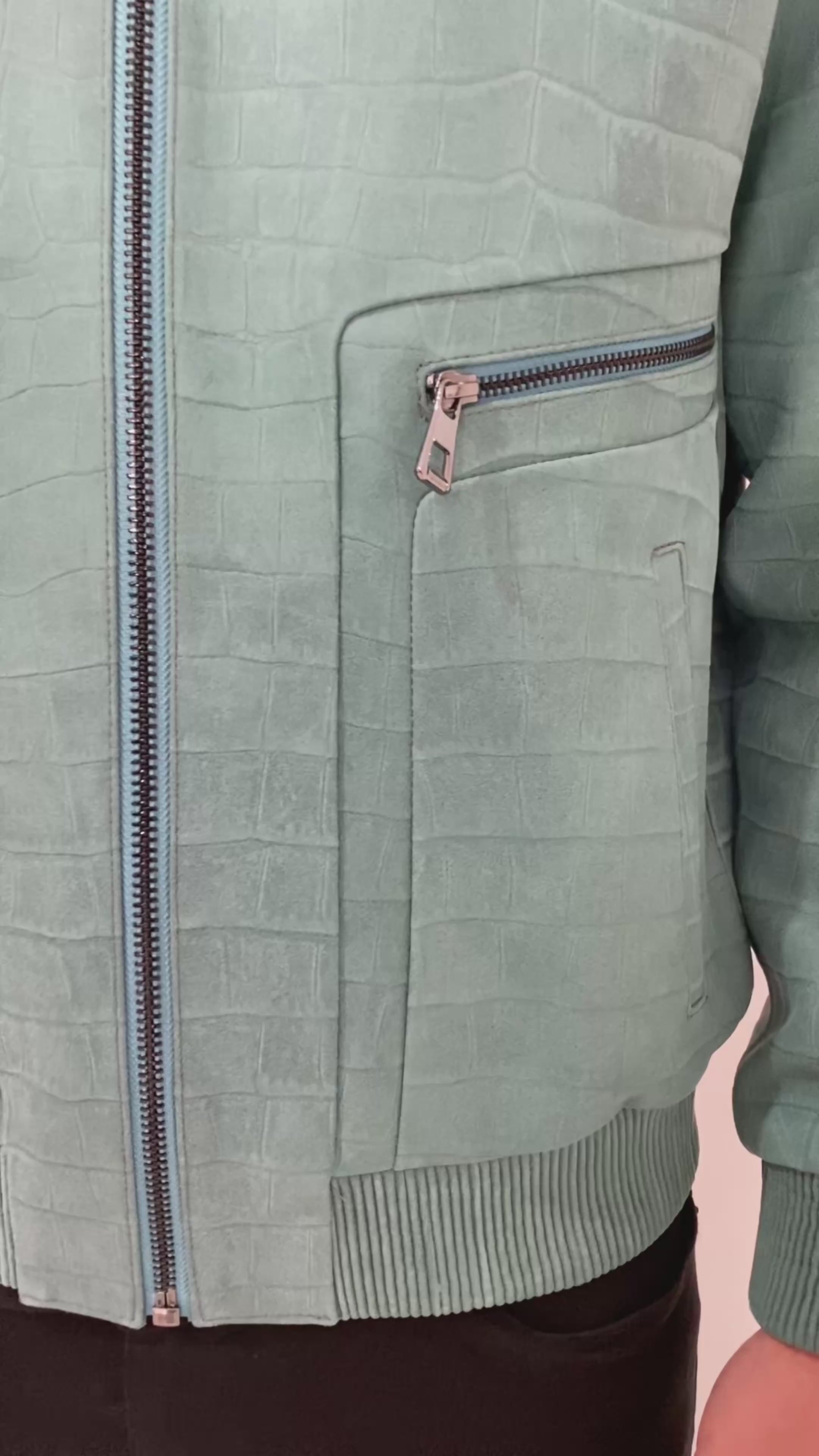 Upgrade your winter wardrobe with the Arctic Luxe Bomber Leather Jacket. Made with luxurious turquoise leather and adorned with a white fox collar, this jacket offers both style and warmth. Elevate any outfit with this unique and eye-catching piece.